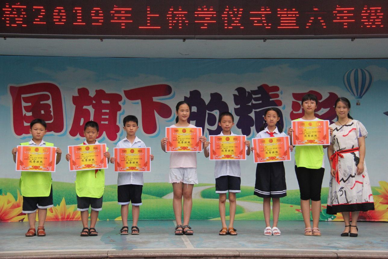 最后,大队辅导员陈琦老师宣读了"优秀班级""三好学生""优秀大队干部"等名单,学校黄校长、袁书记、文芬副校长、陈翔副校长颁发奖状。她希望获得表彰奖励的同学和班级戒骄戒躁,继续努力,在来期取得更好的成绩,同时,也希望全体同学以他们为榜样,虚心学习,奋起直追,迎头赶上。