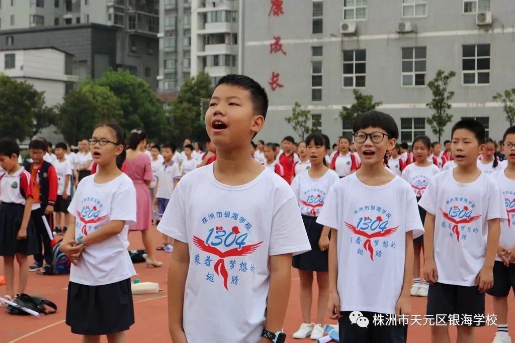 毕业典礼以升旗仪式这一环节拉开帷幕,全场肃立,奏国歌,行少先队礼。这一天,云很白,天很蓝,操场上五星红旗格外鲜艳,五星红旗下六年级毕业生的脊梁也格外的挺拔。升旗仪式过后,熟悉的《银海少年之歌》在操场响起——“银海银海,我们从此扬帆起航!”毕业生们稚嫩却坚定的歌声响彻天空,留在了在场每一位老师、家长的心中。