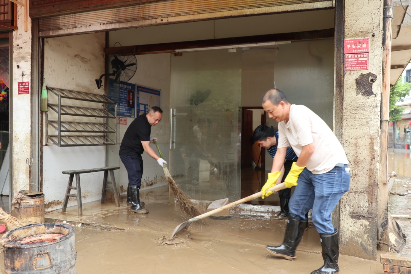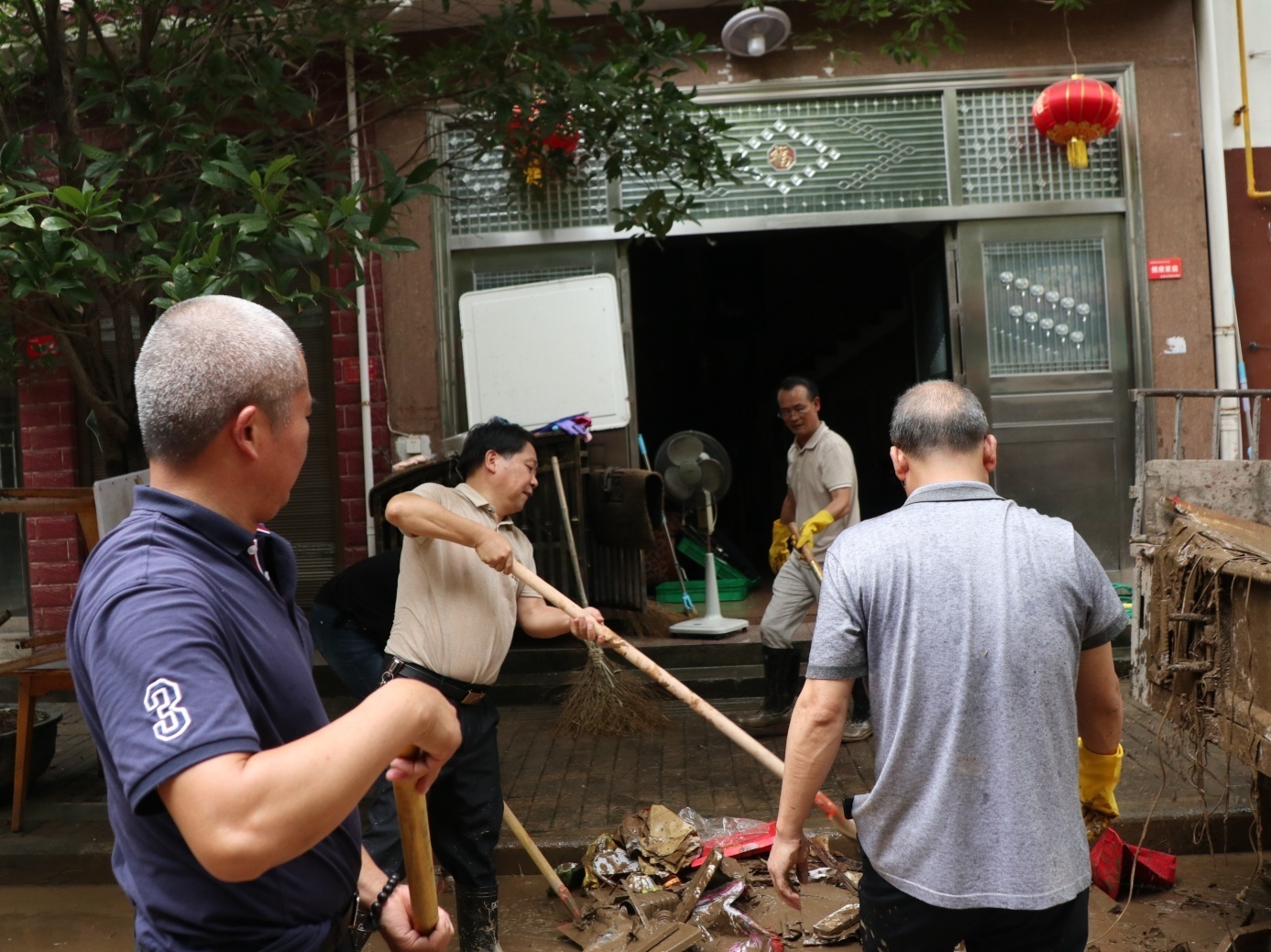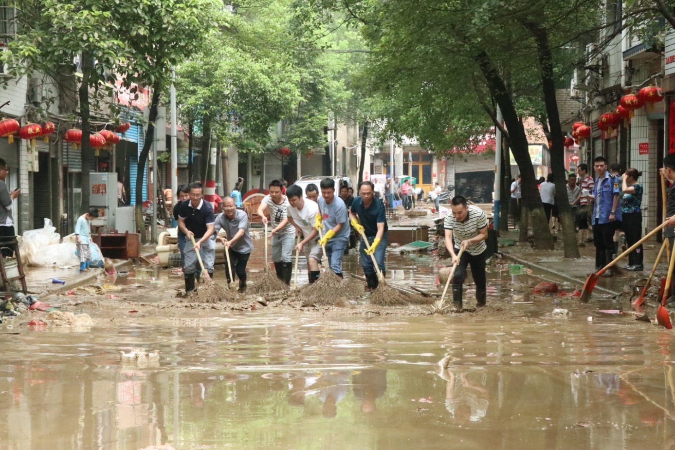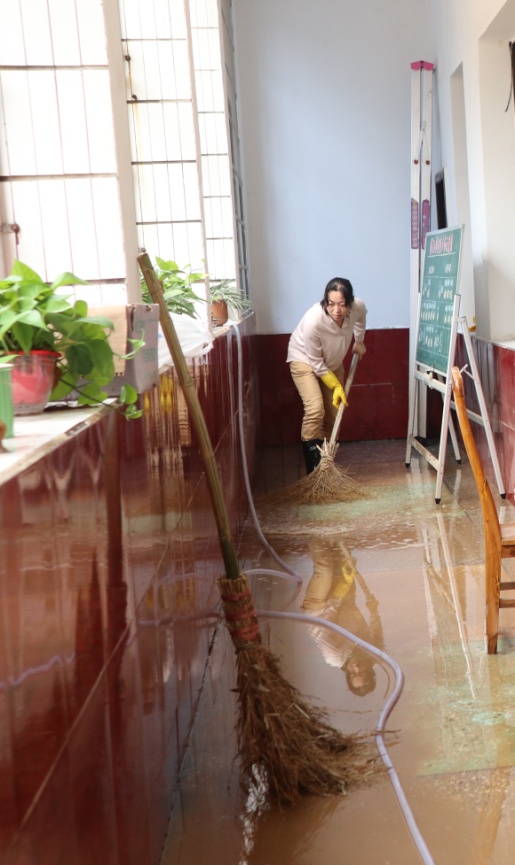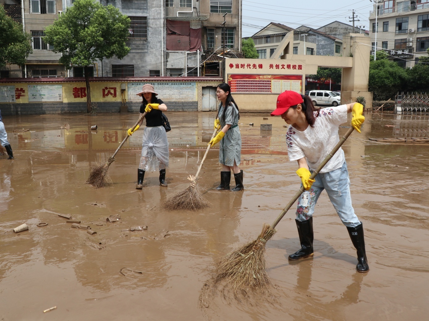 7月10日上午,洪水尚未完全退去,醴陵市教育局党委书记、局长谢世军即带领全体机关干部到属地重灾区仙岳山街道南门社区和南门小学、南门中学参加灾后清扫、消毒、整理工作。