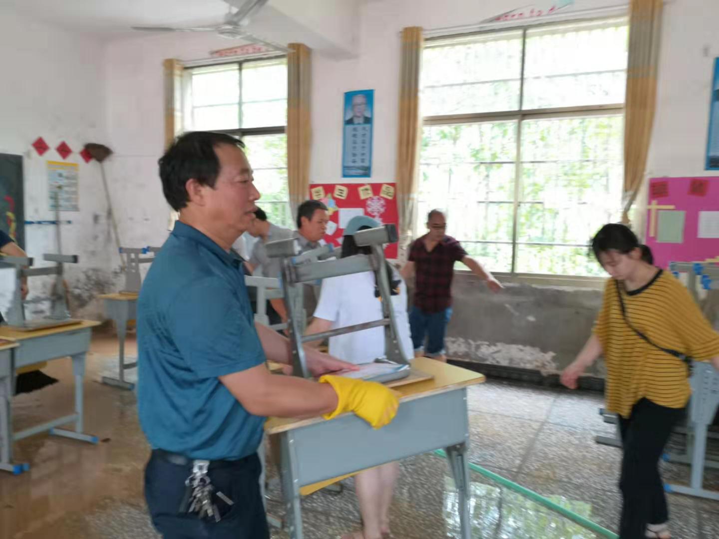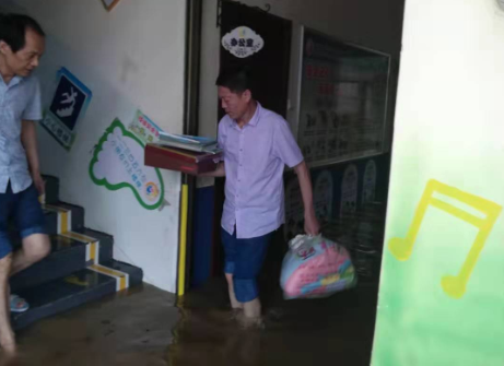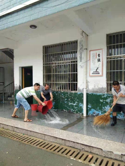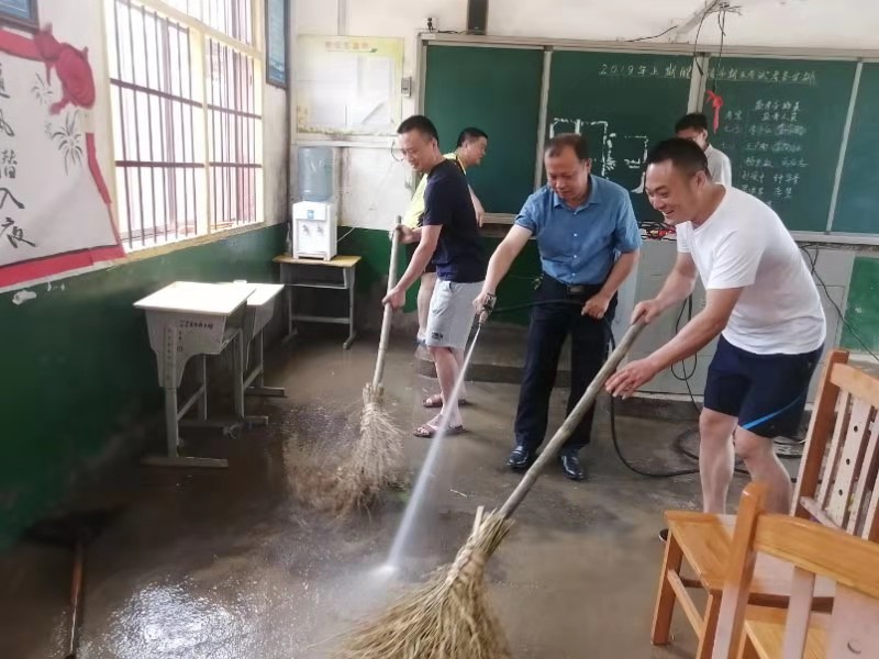 枧头洲中学邓绍勇老师家住枧头洲村,本次洪灾中家庭受损严重,但是他舍小家为大家,二十四小时在校值守,搬运物品,检查设施,清洗消毒。家住外地的枧头洲中学凌光辉、黄申炎老师连续两天克服来校的重重困难,积极参与救灾工作。