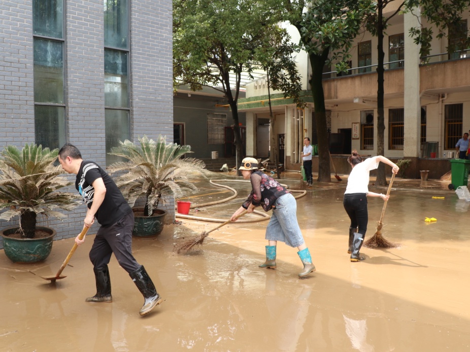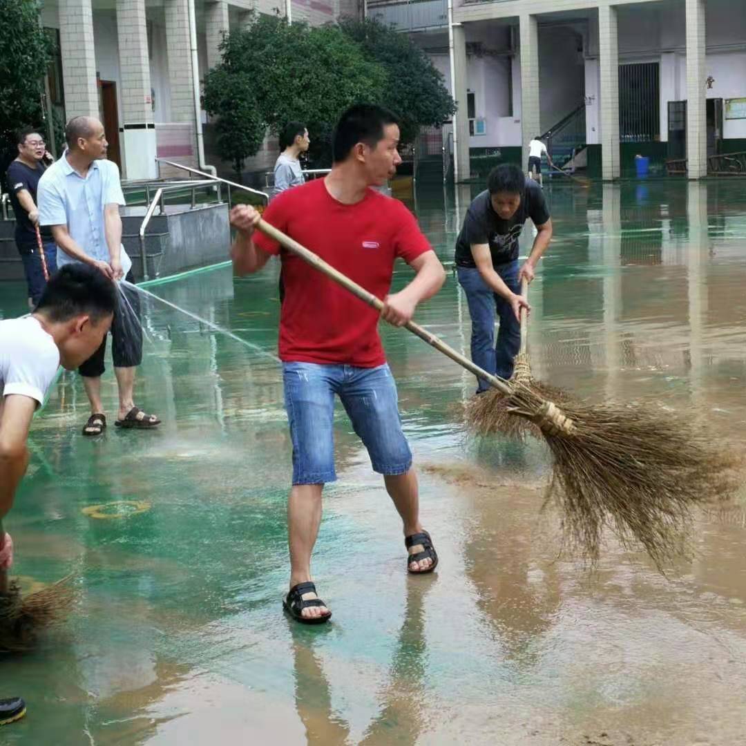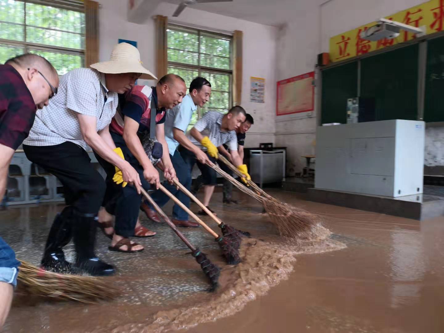铁肩中学所有建筑全部浸水达1米以上,最深处达1.8米,学校专用变压器等设施设备全部被淹,学校初步预计损失达80万元以上。洪水刚退,钟绍兵校长带领党员教师一起,迅速清理物品、打扫淤泥,当看到教育局党委书记、局长谢世军来到时,心情无比激动,老师们热泪盈眶,干得越来越起劲,清理的清理、打扫的打扫、消毒的消毒,校园很快就恢复了灾前的模样。