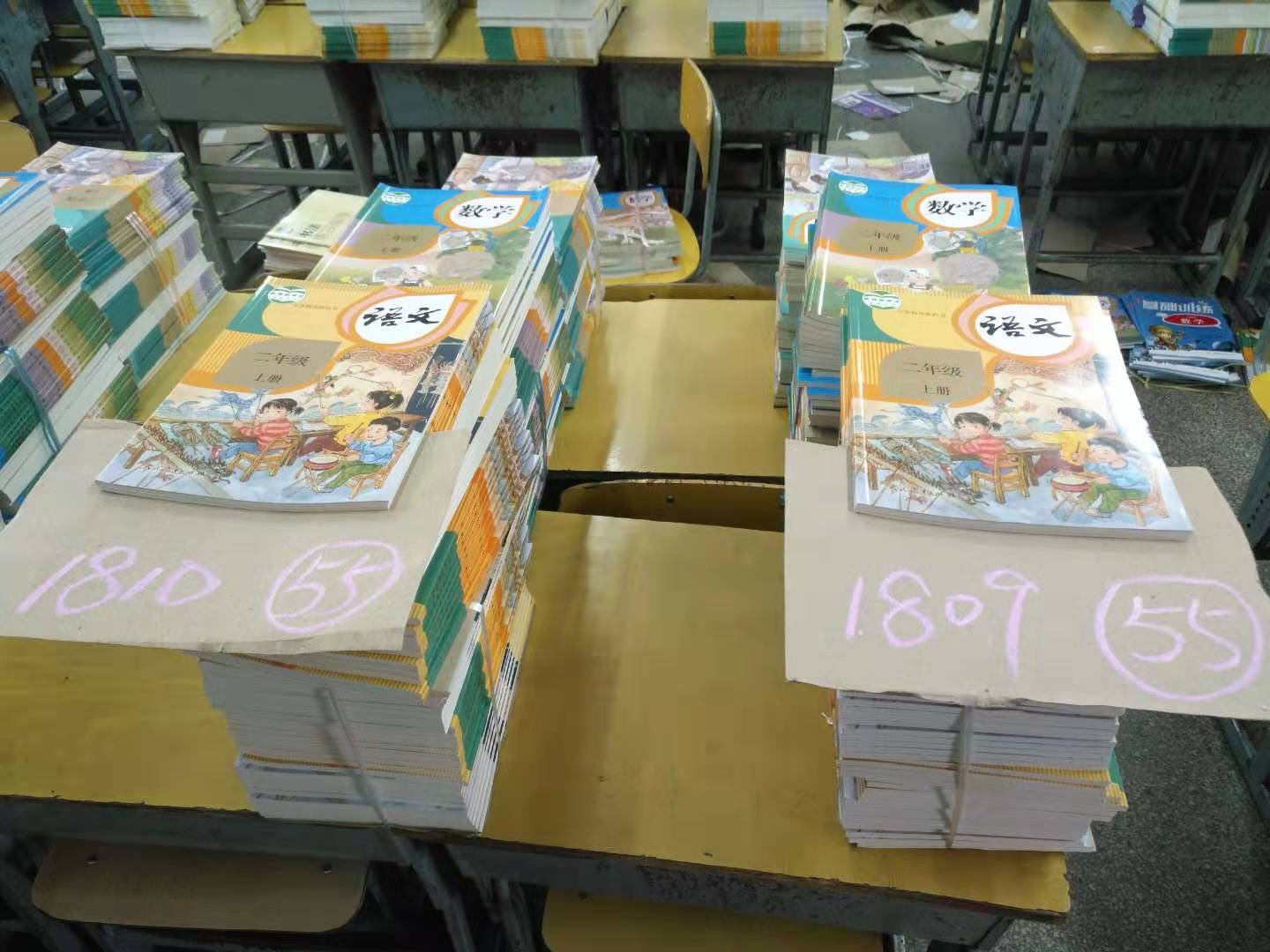 为了让每班分书清楚、高效,总务樊主任将书本分班数好