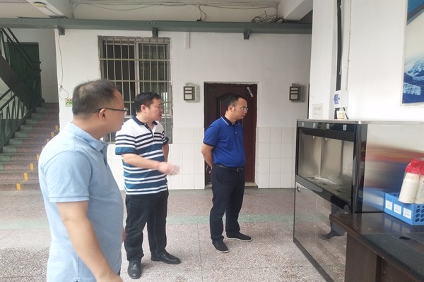 8月26日上午,芦淞区教育局局长朱金辉到贺家土小学视察暑期校园建设进度情况,贺家土小学党总支书记黄建佳等校务会领导陪同。