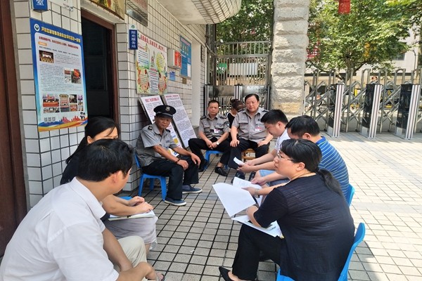 9月3日中午1点,烈日灼灼。考虑到保安工作的特殊性,校长龙洁和党总支书记黄建佳以及学校负责安全工作管理的行政人员和保安在学校大门口召开了学校安全工作会议。