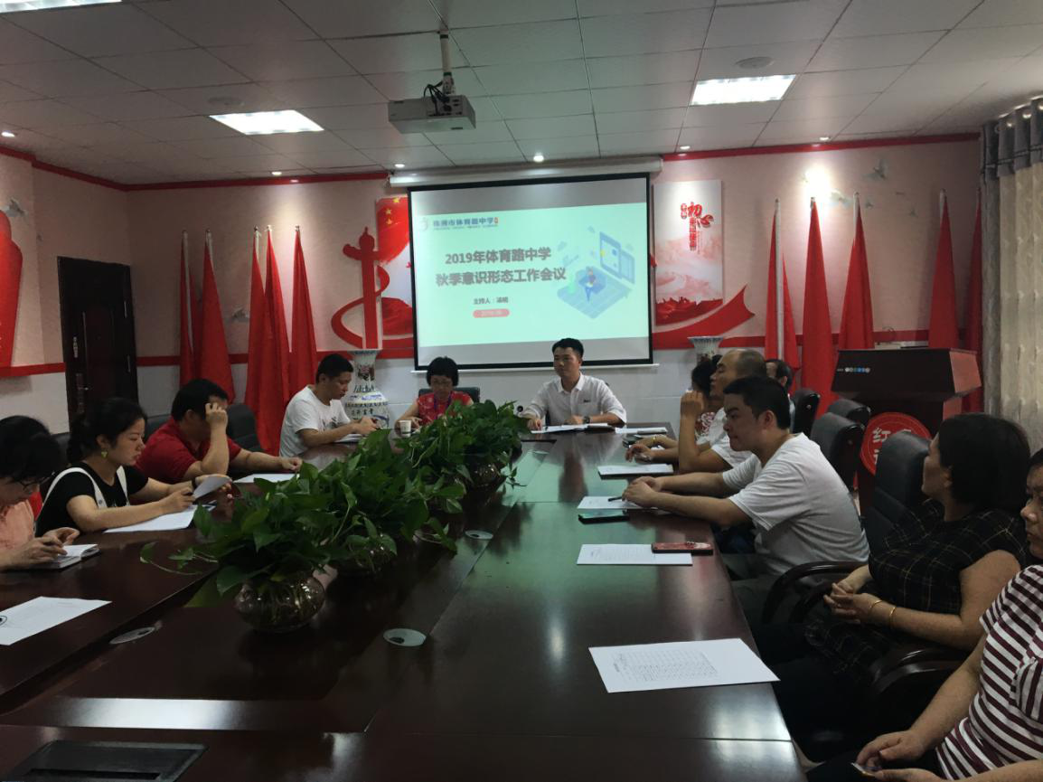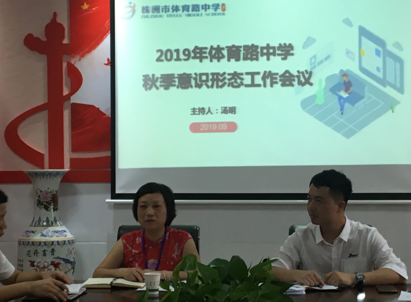 9月11日下午,体育路中学在行政楼二楼新会议室召开了2019年学校秋季意识形态工作会议,就今年上半年意识形态工作的开展情况进行了总结,并分析当前面临的形势,安排部署了下半年的意识形态工作,会议由党总支书记汤明主持,学校各处室、各年级、各教研组负责人和通讯员共同参加了会议。