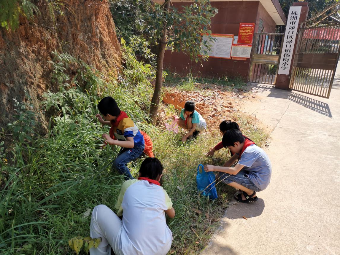 9月23日,少先大队开展"杨梅因我更美丽"的垃圾清理活动。此次清扫主要是以学校门口为起点,东到株洲-白关一线主路的接口处,西至杨梅老屋组,南抵乌冲组,三线合起来约2公里,包括三个路段的路面和两边沟渠。由于这几处路段为本村主路之一,且杨梅小学及村部都位于该路段,来往人多车多,因此环境卫生问题比较突出,严重损害了杨梅的文明形象。