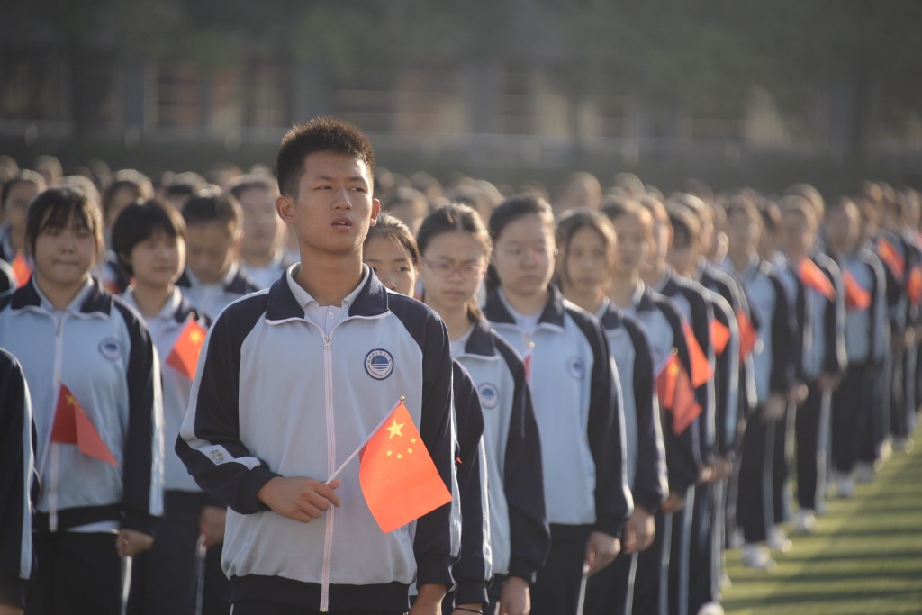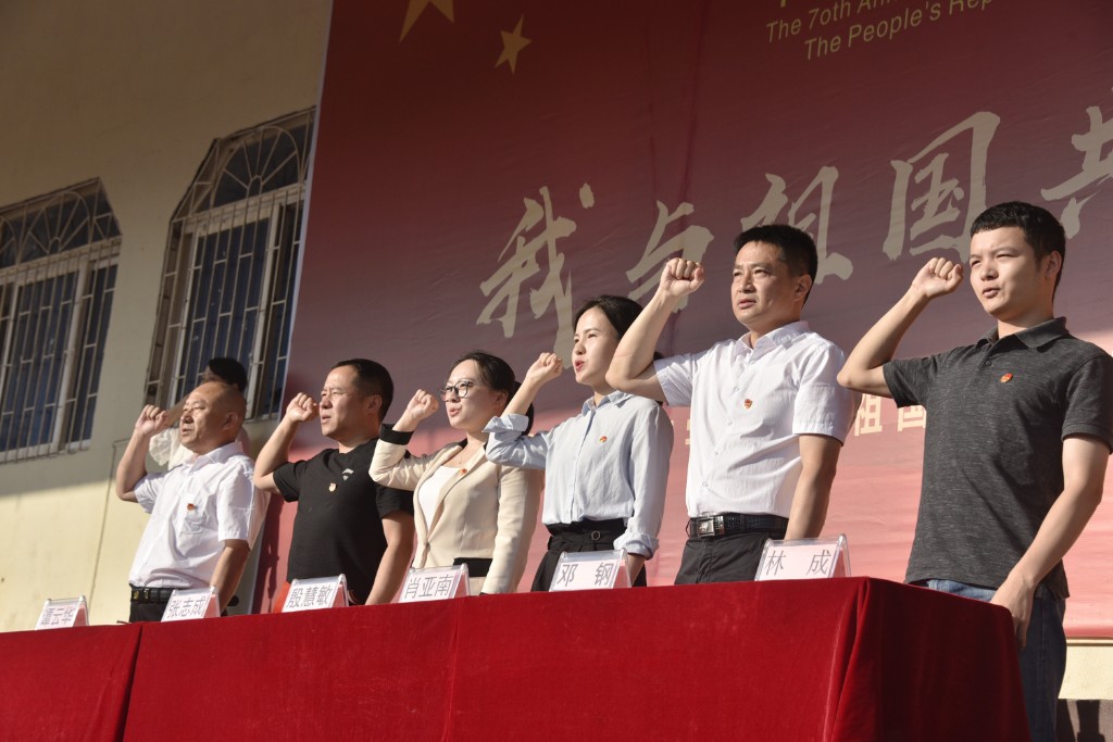 清晨,建宁实验中学3200余名师生齐聚运动场,举行庄严的升旗仪式,齐唱激昂的中华人民共和国国歌; 学生代表进行了题为《我与祖国共奋进》的主题演讲,展现出了朝气蓬勃的爱国精神风貌; 党支部书记谭云华为大家讲授主题微团课,勉励大家坚定理想信念,打牢成长根基; 校团委书记胡嘉欣带领全体师生重温入团誓词,激励大家勇担使命,锤炼品格,不断书写奉献青春的时代篇章; 全体师生合唱《我和我的祖国》,他们挥舞着手中的小国旗,唱响了爱国情怀,共同为祖国献上最真挚的祝福。
