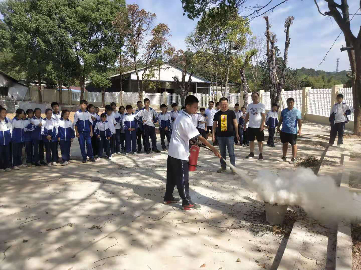 紧急消防安全疏散演练结束后政教处齐志军主任对学生强调了逃生中必须注意的事项和一些需要改进的地方。随后,总务处贺曾主任讲解了灭火器的使用方法,并且示演练如何使用灭火器灭火,同时也让学生做示范。