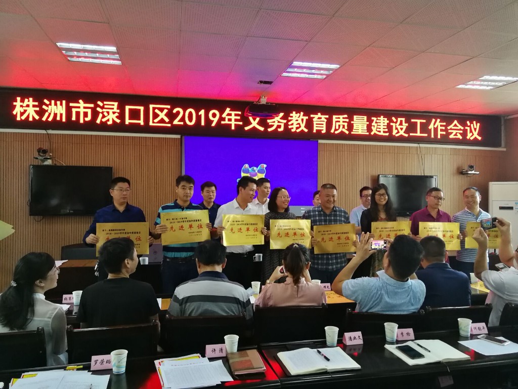 副局长李浩治宣读了表彰决定,渌口镇松西子小学、南洲镇城塘小学、育红小学等17所小学被评为“小学质量建设先进学校”;渌口镇中学、湘渌实验学校、龙潭镇砖桥中学等8所初中学校获得了“初中质量建设先进单位”;南洲镇昭陵中学、朱亭镇黄龙中学、淦田镇淦田中学被评为“初中质量建设突出贡献单位”;渌口镇中心学校被评为“义务教育质量建设先进单位”,局党政班子为所有获奖的学校颁发了奖牌。