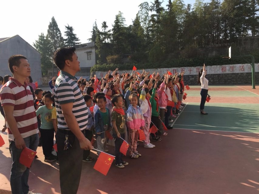 龙船镇中心校的吴校长、江校长、何校长、唐校长、文书记及吴校长等党员共同参与了此次升国旗仪式,激情澎湃的对着国旗唱出自己的自豪。