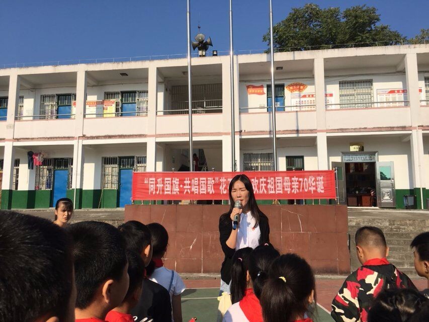 为了铭记历史,同时发扬壮丽70年,奋进新时代的精神,在9月30日,花石小学及龙船镇中心学校的全体教职工举行了隆重的“同升国旗、共唱国歌”活动,用自己方式庆祝庆国70周年,表达全体花石师生对祖国的热爱之情。