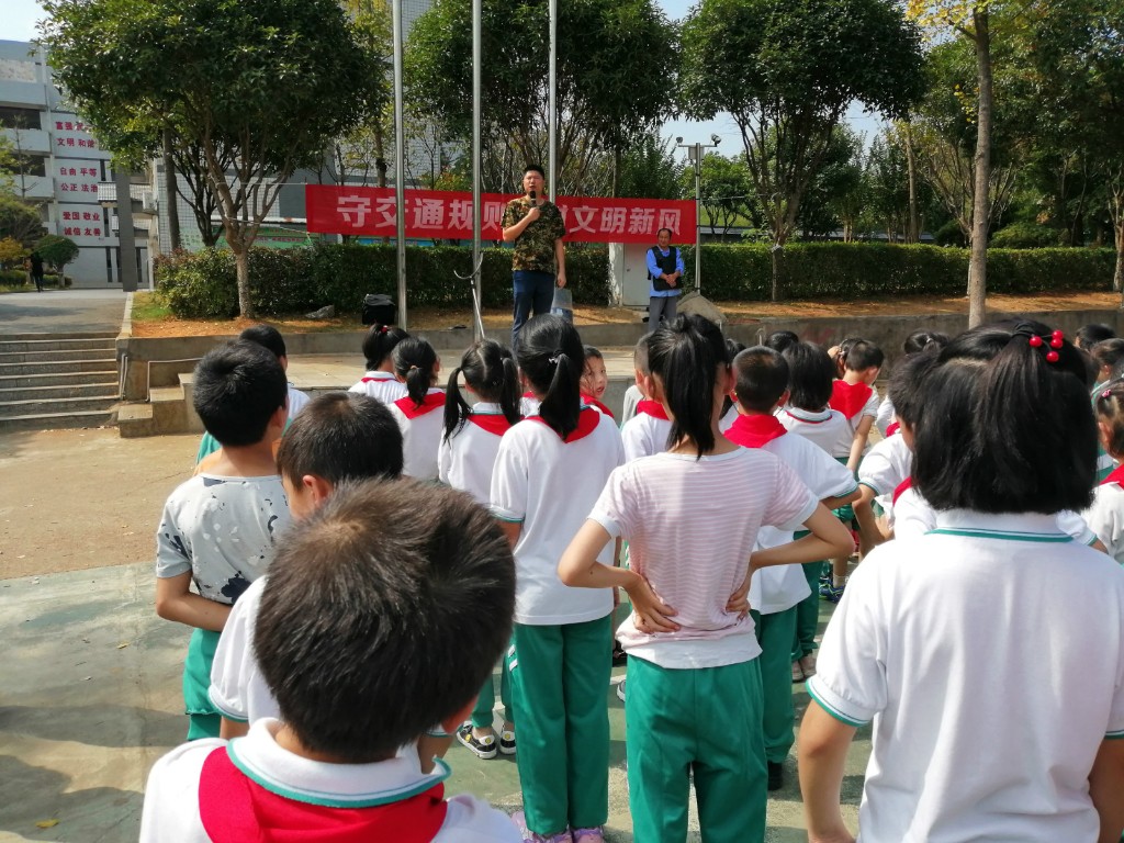 大课间,阳教官用通俗易懂的语言对校园周边道路环境和当前的交通安全形势进行分析并通报了近年来发生的涉及中小学生典型事故案例,紧密结合中小学生参与交通活动的特点,讲解了骑车、乘车、走路等过程中可能遇到的交通安全问题,讲授交通安全知识,教育学生在学习和日常生活中要养成良好习惯,过马路要走斑马线,不能在马路上嬉戏玩耍,不乱穿马路、不搭“带病车”、不坐超员车等交通安全常识,提高学生交通安全防范意识。
