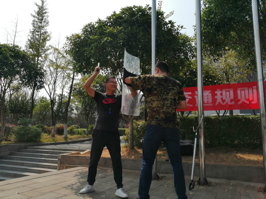 接着阳教官对安保人员及男教师进行了反恐防暴的知识讲解,并指出演练过程中在使用护卫棍、警用盾牌、钢叉的注意事项,还讲述了相关人员在警戒、取证和外围执勤上应注意的事项。接着创设情境组织进行了一次演练。通过此次反恐防暴应急演练活动,锻炼了安保人员处置暴力突发事件的应变能力,能有组织、有步骤、快速应对,积极、快速协助警察制服暴徒。