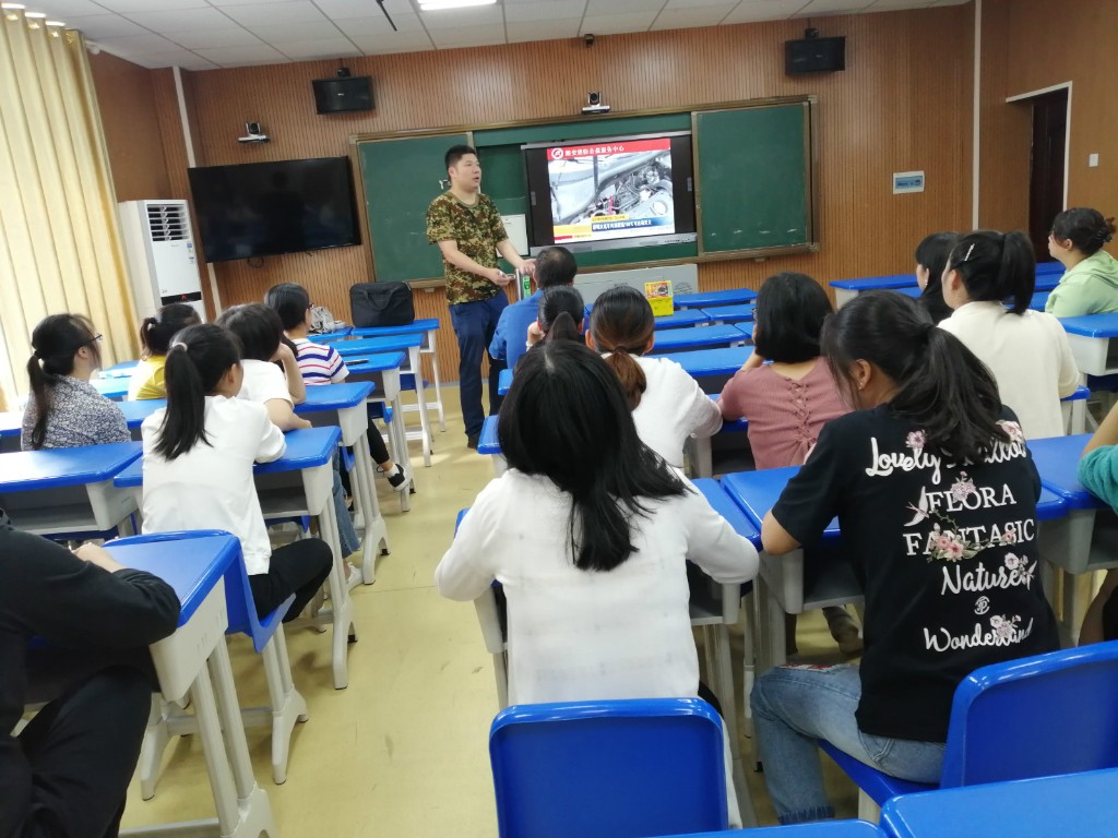 随后阳教官结合平时发生的消防真实案例,利用图文并茂的PPT课件对燃气安全使用常识、电器安全使用常识、火灾周期分析及三分钟灭火自救、公共场所防火、家庭突发紧急情况应对办法、紧急情况下的逃生技巧,各类消防器材的正确使用及其日常维护等消防常识进行了详细讲解,现场气氛十分活跃,教师们边听边记,不时给予热烈的掌声。