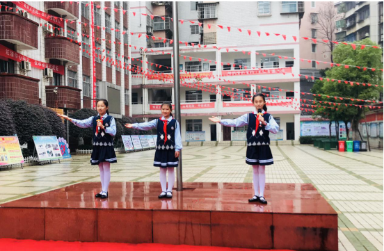 活动分为四个篇章:《我和红领巾的故事》、《庆小娃,中国心》、《先锋队的誓言》、《我为祖国唱首歌》。云娃们在鲜艳的五星红旗下、在迎风飘扬的队旗前,载歌载舞,共庆少先队建队70周年。最后,大队辅导员肖逸斓老师为大家带来了习爷爷的贺信,并号召全体队员牢记习爷爷对少先队员们提出的新的希望和要求:从小学先锋、长大做先锋,努力成长为能够担当民族复兴大任的时代新人!
