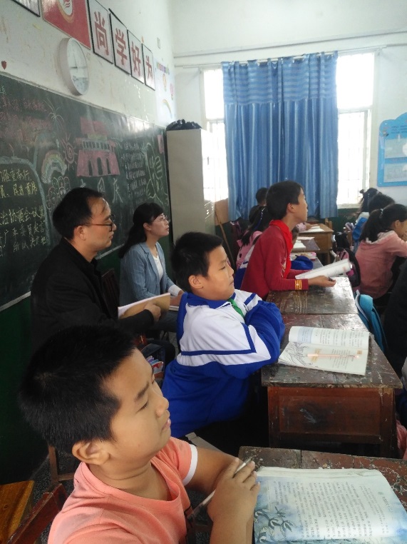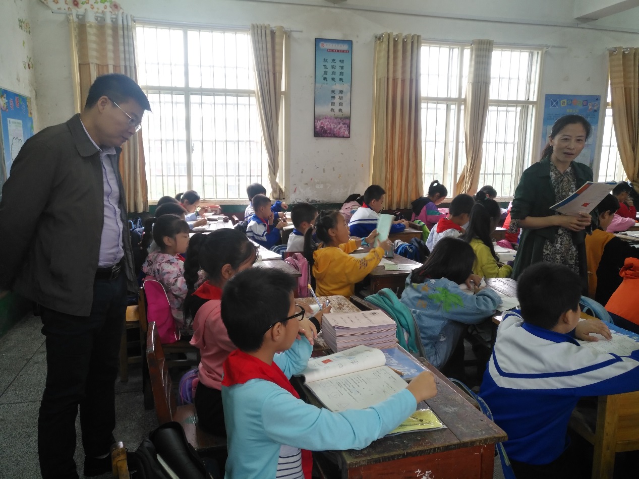 10月17日早上8点,渌口镇中心学校校长张赛辉和副校长孙正球就来到学校,立马巡查了46个班级的课堂常规和学习习惯等情况,听了龙文祥老师的一年级语文课。课堂上学生行为习惯好,坐姿端正,学生以小组合作的方式学习拼音,课堂教学效果好。