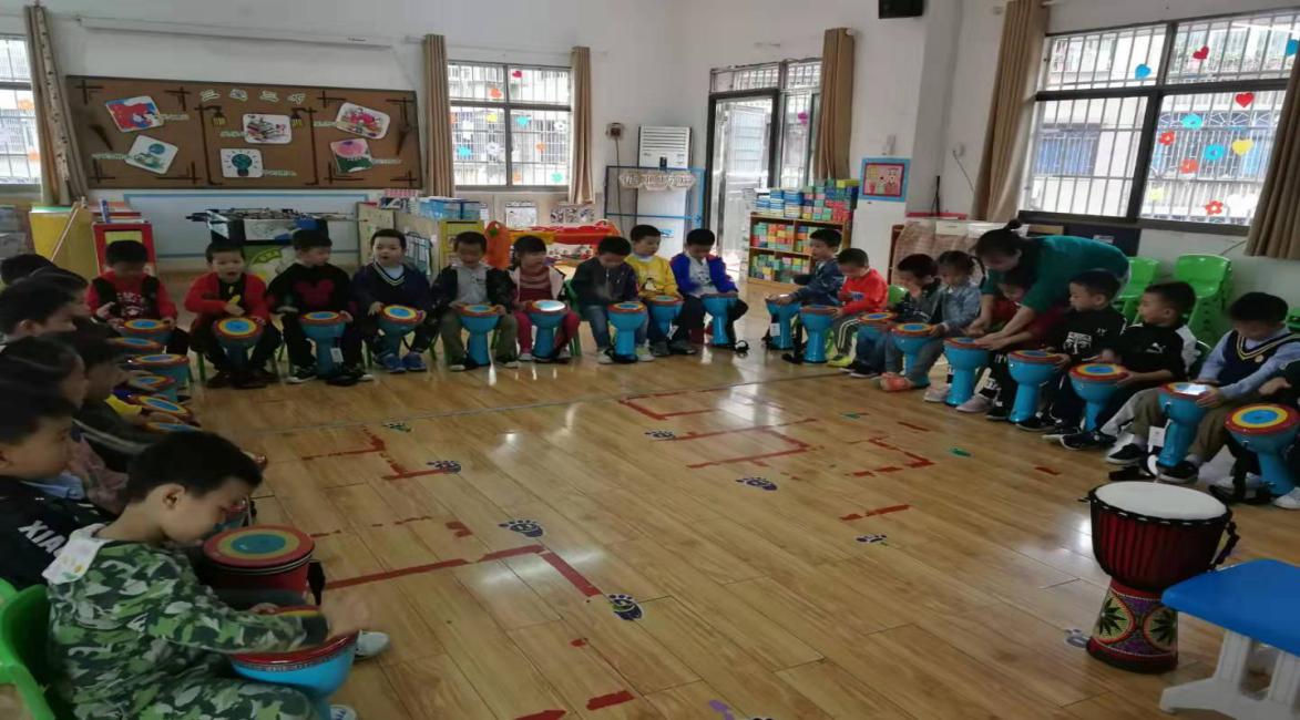 园长妈妈为大家表演了一首歌曲,孩子们第一次接触到非洲鼓,兴奋地参与到音乐活动中,也试着用乐器发声,来表达自己。