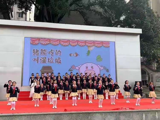 为了让孩子找到一些便捷的给垃圾分类的方法,四(3)班同学精心准备了歌舞表演《垃圾分类歌》,“猪能吃是湿垃圾,猪不要吃的是干垃圾,猪吃了会死的是有害垃圾,卖了可以买猪的是可回收垃圾”,有了这样好的分类方法,孩子们更容易帮垃圾回到了自己的家。