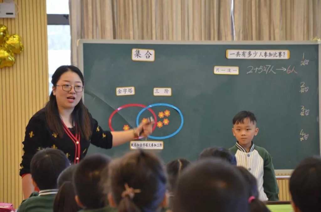 第一节课是由尚格小学黄穗华老师执教的《数学广角—集合》,通过用学生熟悉的魔方选拔赛中开始,这样真情实感的生活情境,让学生在课堂中能够充分地进行表达,建立其数学思维。让学生真正的做到在生活中学数学,在思考中用数学。