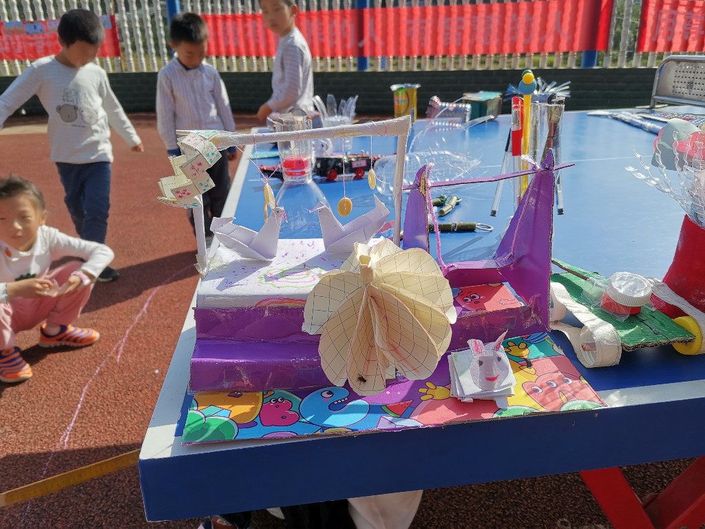 手工废品制作展和科技创新成果展,引得学生流连忘返。虽然作品简陋,但掩不住学生对科学的热爱和追求。