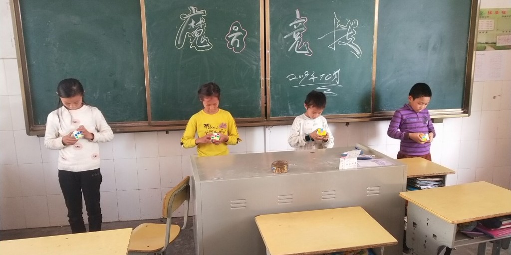 三、四年级“魔方竞技”。虽然很多同学并未挑战成功,但一次比一次有进步,便是收获。