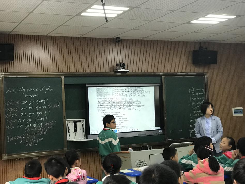 松西子小学新教师肖洋老师提供了一堂"My weekend plan"为主题的英语单元复习课。课堂上,她通过同学们结束期中考试,迎接周末的到来展开询问周末活动,进行头脑风暴,引出课堂主题:Make my weekend plan ,由老师的计划引出单元的重点句型,并反复操练。精心设计每个环节,整个教学流程清晰明了,由易到难,衔接自然。到最后的输出写作环节,引导学生制定计划需要注意什么,怎样使得计划可行,合理又丰富。采用投屏的方式展示学生的作文,并进行了点评和批改,引导学生注意行文连贯和书写。