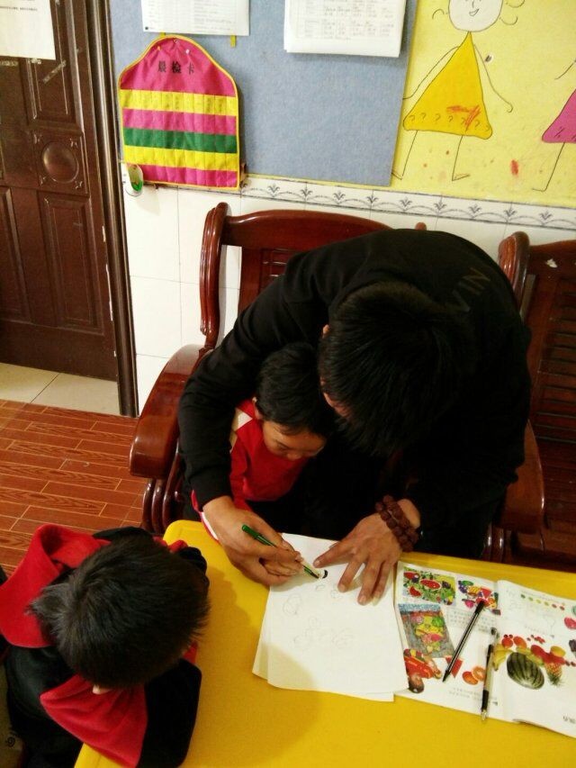 11月11日,罗老师再次来到幼儿园,这次小孩情况有所好转,她虽然依然不与罗老师交谈,但能用眼神和微笑回应罗老师。罗老师教她画了一些水果,她似乎很感兴趣,也跟着罗老师动笔画面。临走之时,她第一次跟罗老师开口道“再见”。相信多与她交流和沟通,她会慢慢打开自己的心扉,愿意与他人交流。