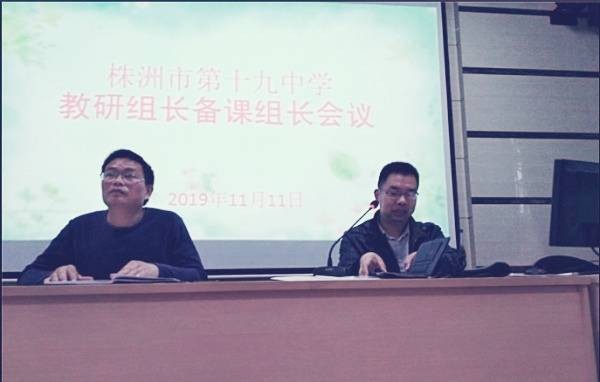 11月11日下午,株洲市第十九中学在西校区阶梯教室召开了全校教研组长、备课组长会议。本次会议旨在进一步总结经验,推动学校教学改革,提高教学质量,为进一步落实学校跨越式发展添砖加瓦。会议由教师发展处丁绍槐主任主持,主管教研的副校长朱暾颖出席会议。