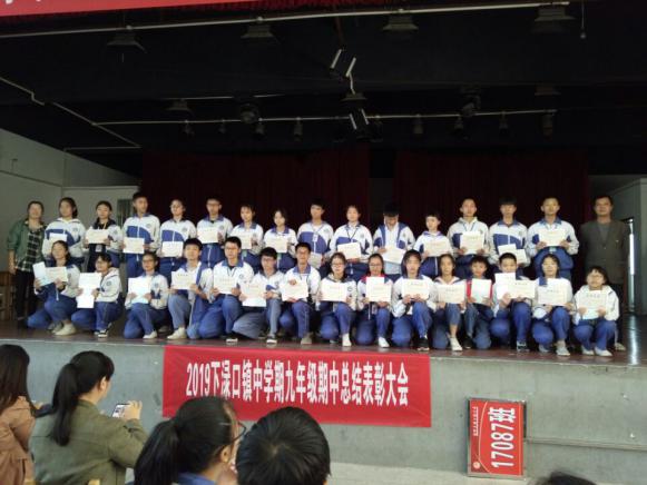 (通讯员 杨俊)2019年11月15日,渌口镇中学九年级全体师生齐聚学校礼堂,隆重召开期中总结表彰大会。