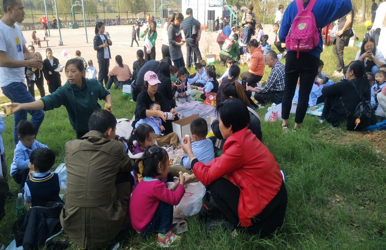 9:30,大班进行操展示开始了。大班孩子通过进行操展示着他们跳、跑、钻等方面的活力,孩子们灵巧的动作获得家长们的热烈掌声。随后,体能老师带领全园教师和孩子一起进行热身运动,做快乐早操。热身完毕,幼儿园老师为今天参加毅行的孩子们颁发了金牌,孩子们高高举起金牌,开心极了!10:30,亲子游戏开始了,家长和孩子在"超级大热狗"、"垃圾减量"等游戏中一起翻滚、一起奔跑、一起过独木桥......,留下了无限的欢声笑语!11:00,美食分享时刻到了。家长们在自带的爬爬垫、桌布上和孩子们无拘无束地享受着各自带来的美食。