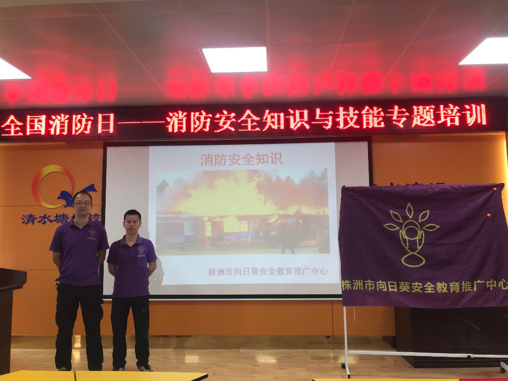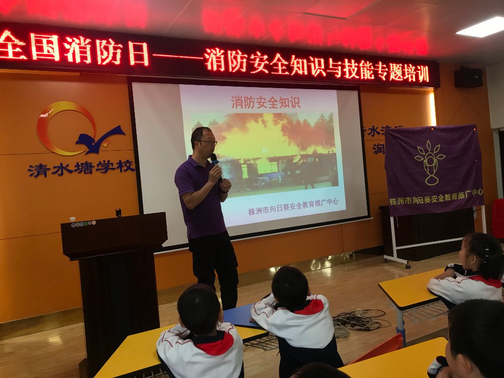 2019年11月5日上午,清水塘学校邀请株洲市向日葵安全教育推广中心谢伟、袁国华老师来校,组织开展了主题为“消防安全知识与技能”的培训。