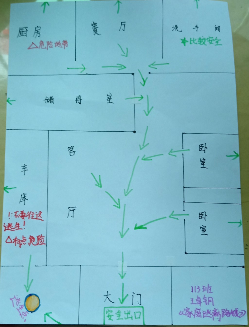 谢伟老师从灭火的基本方法、公共消防安全、消防指示标牌、家庭防火四件宝、寻找家庭安全隐患、制定家庭逃生线路图、自护逃生、急救原则等方面,辅以课件、示范、模拟、答疑、分析等形式进行授课,让同学们更加了解了“防火四件宝”及使用方法,帮助同学们掌握了正确求救、报警的方式。
