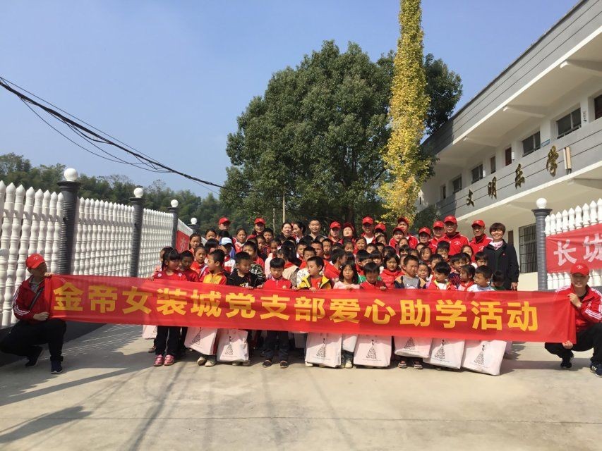 2019年11月11日,金帝女装城党支部全体党员来到地处偏远的长垅小学慰问孩子们,为孩子们带来了盼望已久的数学、美术、音乐学习用具。他们给师生带来的不仅仅是物质上的帮助,更重要的是精神上的鼓舞, 孩子们个个欢呼雀跃,倍感温暖。