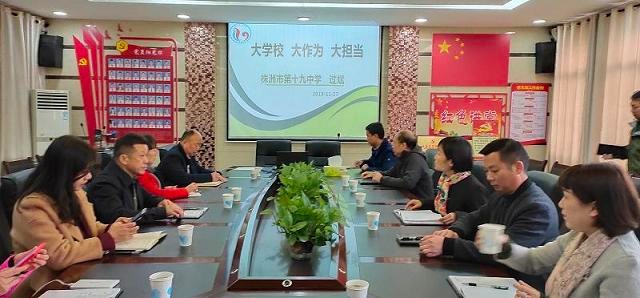 11月27日,荷塘区教育局党委书记、局长提名人选赵文喜携局党委班子成员到第十九中学与学校班子成员和部分中层干部交流座谈。