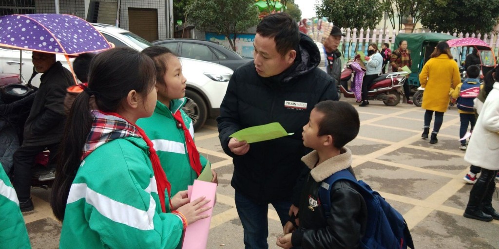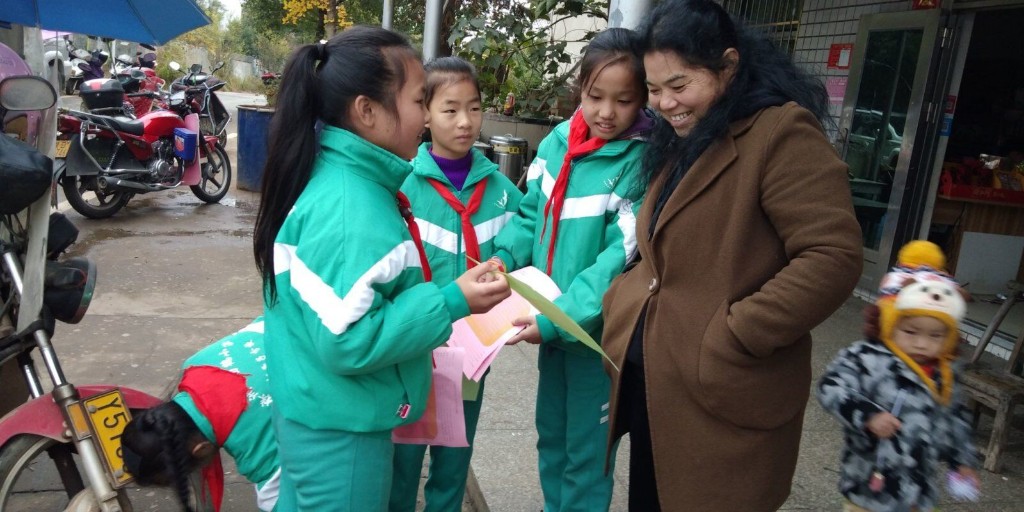与绿色同行 与环保相约---渌口镇松西子小学红领巾小分队“垃圾不落地”街头劝导活动