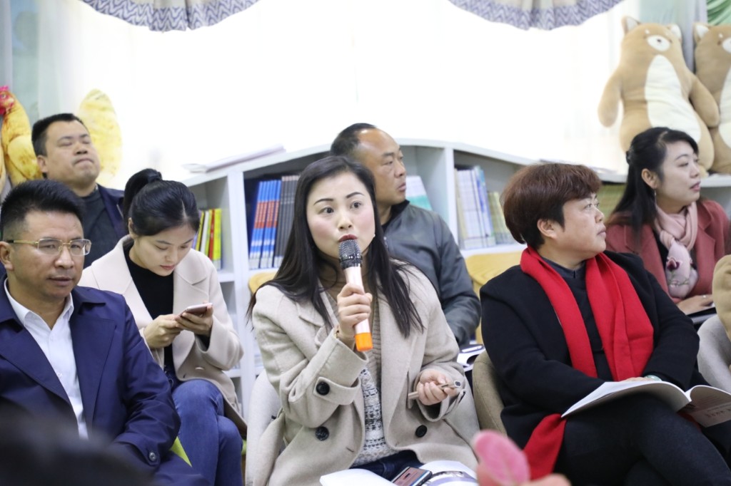 11月29日下午,荷塘小学教育集团美的学校雨露书房温馨舒适,暖意浓浓,荷塘区赴中央民族大学附中教育集团第一期精英培训分享会在此召开。荷塘区人民政府副区长罗曼出席,区教育局党委书记、局长赵文喜,党委副书记、副局长刘美贞,副局长王晓红、李薇莅临指导,局相关股室负责人、各中小学校长、荷塘小学教育集团管理人员参加活动。分享会由星光小学王晓主持。