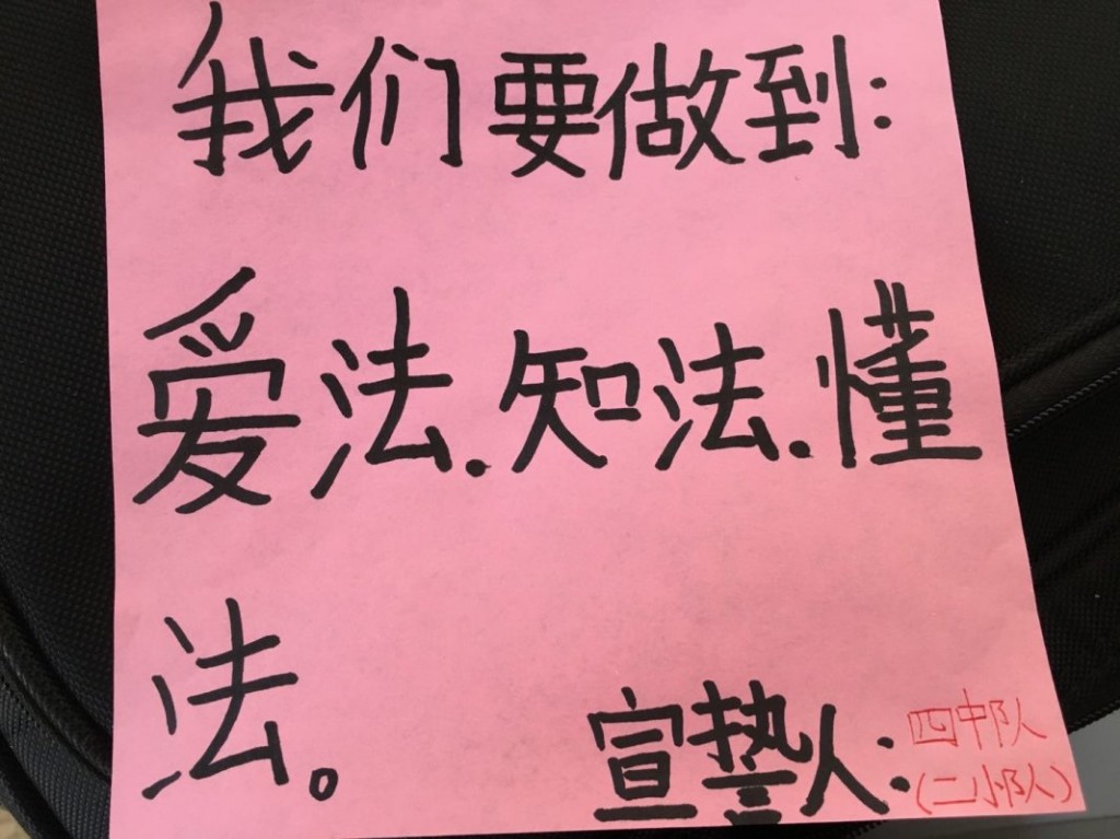 为了让学生更好地学习宪法内容,我校开展了制作宣传标语的活动。