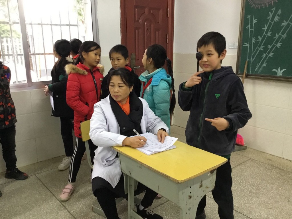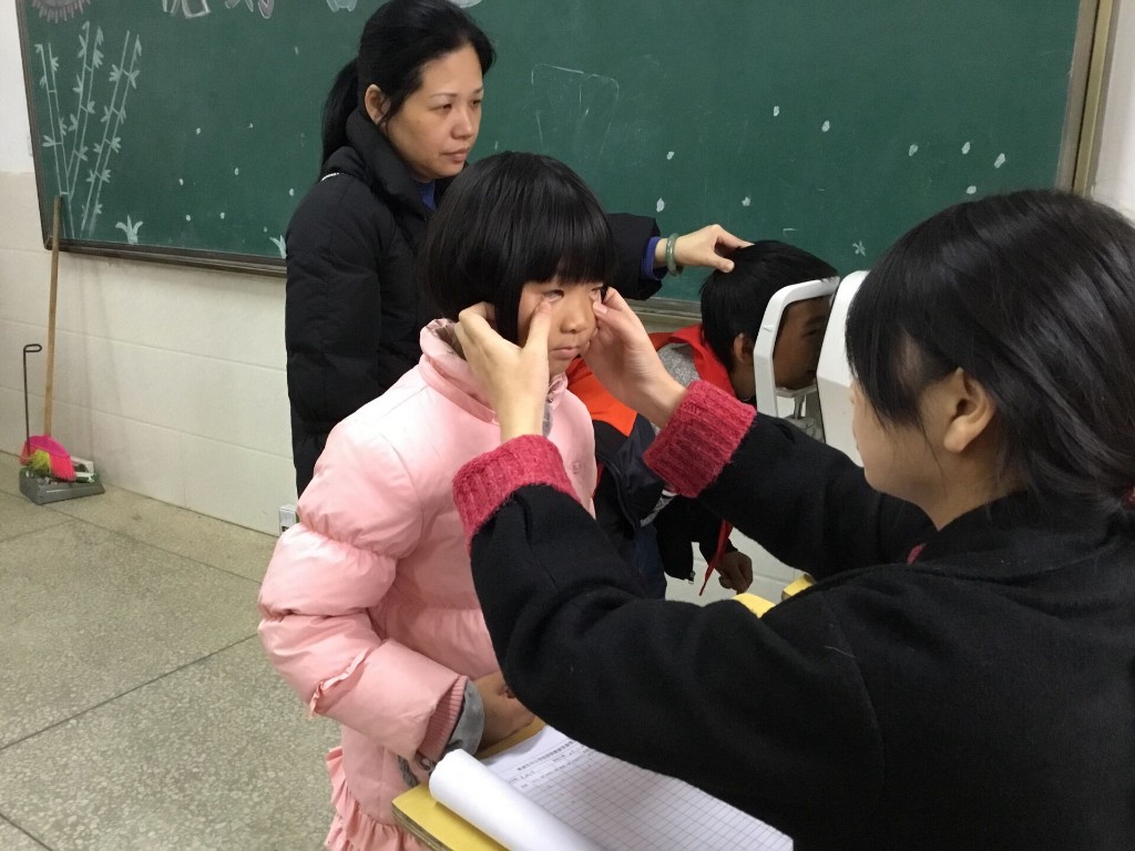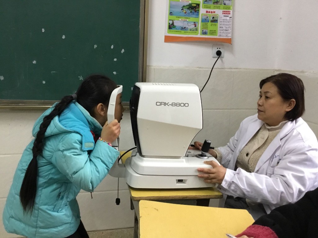 株洲三三一爱尔眼科医院的医生来我校为学生检查视力。