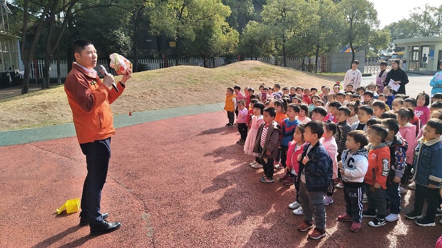 其次,为了提高幼儿园师生消防自救能力,熟悉逃生路线,在发生火灾时有序、迅速的引导幼儿安全疏散,让幼儿经历安全撤离过程,达到遇事不慌、积极应对、自我保护的目的,提高抗击突发事件的应变能力,石峰区幼稚园在11月20日上午10点25分开展了消防安全疏散演练。在没有任何事先通知和准备的情况下,全园师幼仅用时1分28秒就全部撤离至安全区域。疏散撤离后,来自湘安消防公益服务中心的阳智主任给幼儿和老师们普及了很多具有实际作用的消防措施和遇险时的应急处理方法。