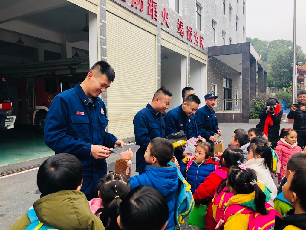 11月29日下午,我园组织大班幼儿到“石峰区公安消防大队”进行参观,受到了消防队官兵的热情接待。走到消防队门口两辆排列整齐的消防车映入眼帘,第一次这么近距离地接接触消防车,孩子们都兴奋不已。紧接着是消防战士给孩子们讲解了消防安全防范知识和自救知识。孩子们近距离的聆听并观看了消防叔叔对各种消防器材、救援装备进行了仔细的讲解和操作示范,还让孩子们戴上消防帽、穿上了消防衣进行体验,让孩子真实地了解各种消防工具的功能及使用方法。最后孩子们为消防员叔叔献上了自己的礼物和深深的祝福!