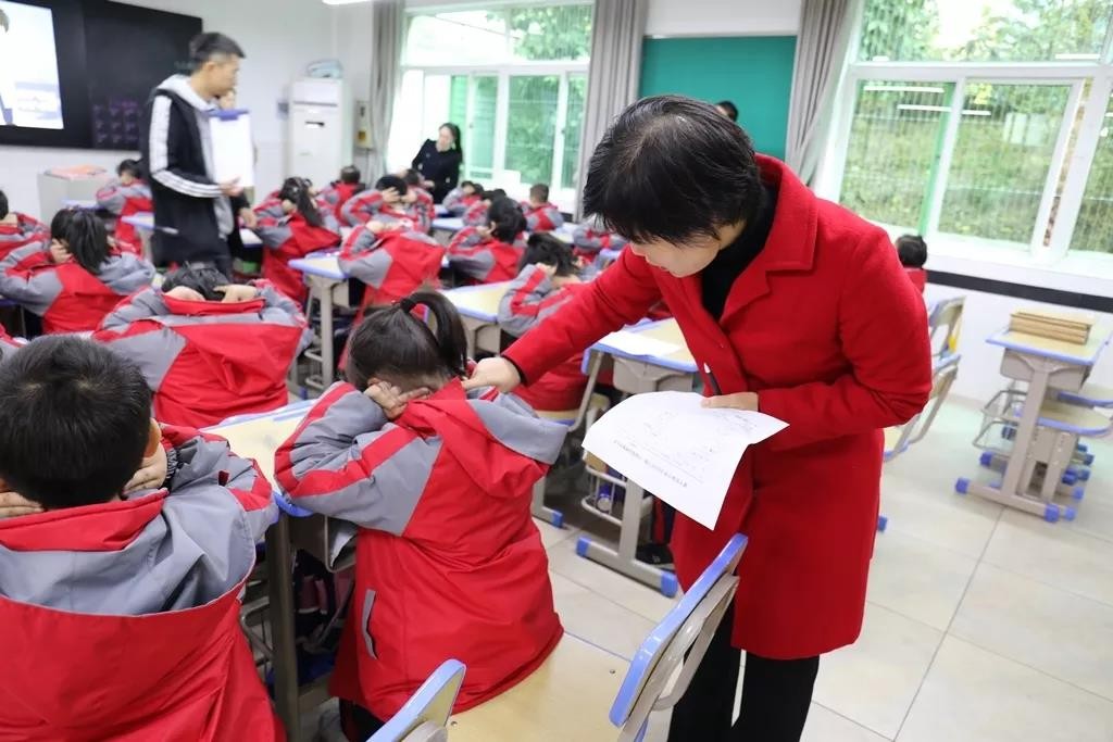 评委老师们分别到各个教室观看评比。同学们则个个坐姿端正,轻闭双眼,等待比赛的开始。评委老师从手部卫生、轻闭双眼、坐姿、穴位准确性、动作整齐性、精神面貌六个方面进行评价。
