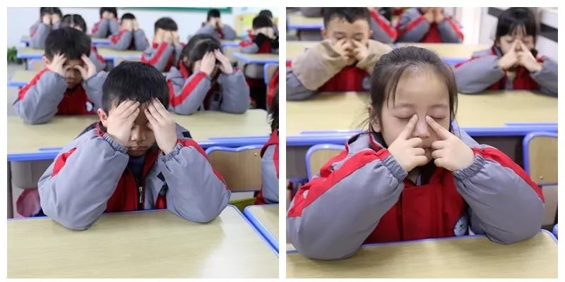 比赛过程中,随着悠扬的眼保健操音乐声,学生们认真按节奏揉捻刮按穴位,整体能做到双眼轻闭,姿势端正;穴位、动作正确到位;节拍准确,用力适度。