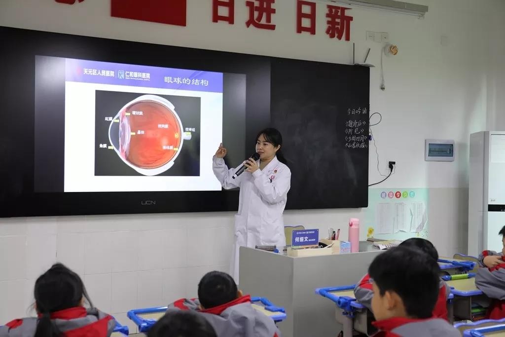 赛后,为了进一步做好预防近视工作,呵护好孩子的眼睛,建宁实验小学邀请了天元区人民医院•仁和眼科的何细文医生来我校开展以“预防近视,从今天开始”的爱眼进校园公益讲座。