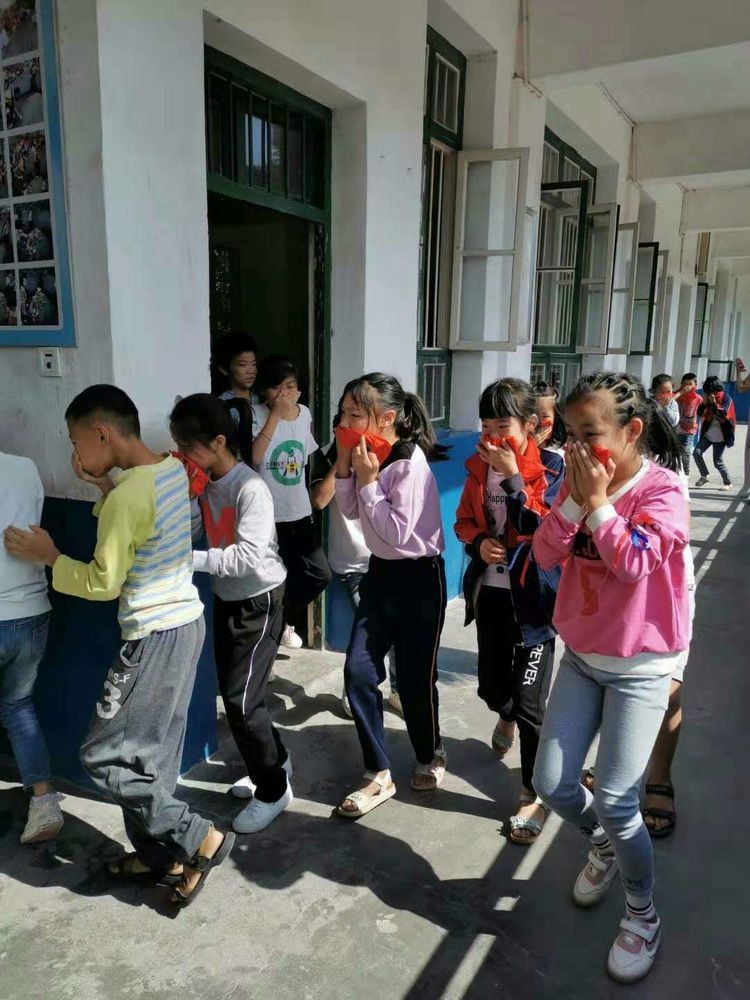 消防警报响起,各班学生按照平时疏散线路快速而有序的疏散到学校的应急场所。