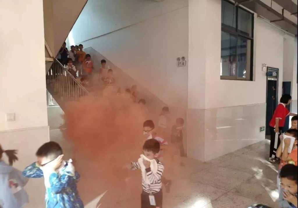 警报声一响起,学生们立刻用手捂住口鼻,迅速有序地往安全区域撤离。全校两千多名师生仅用了3分14秒就安全撤离出教学楼,整个过程井然有序、有条不紊,没有发生任何拥挤、混乱等现象。
