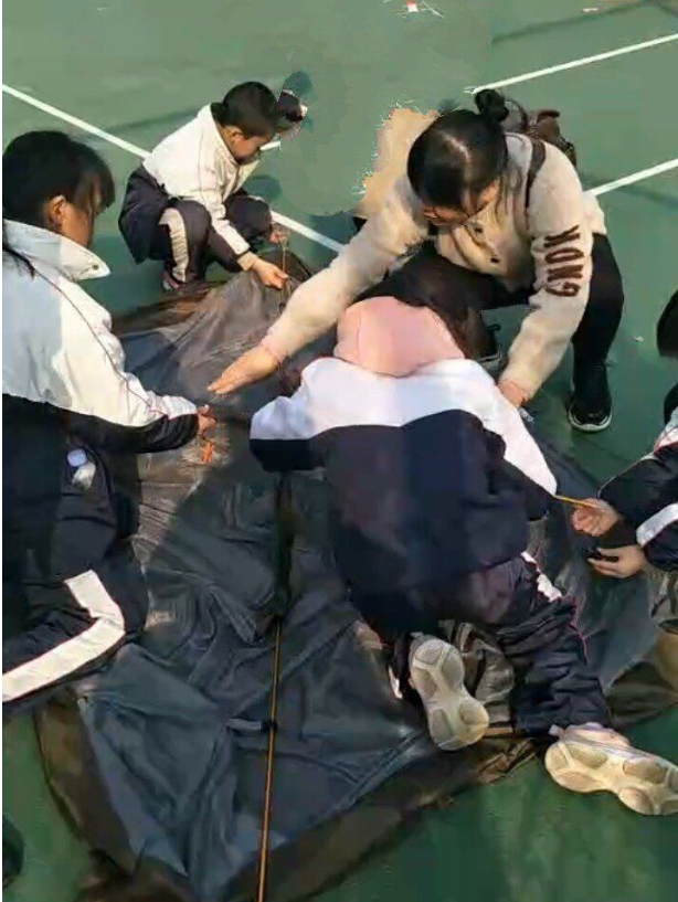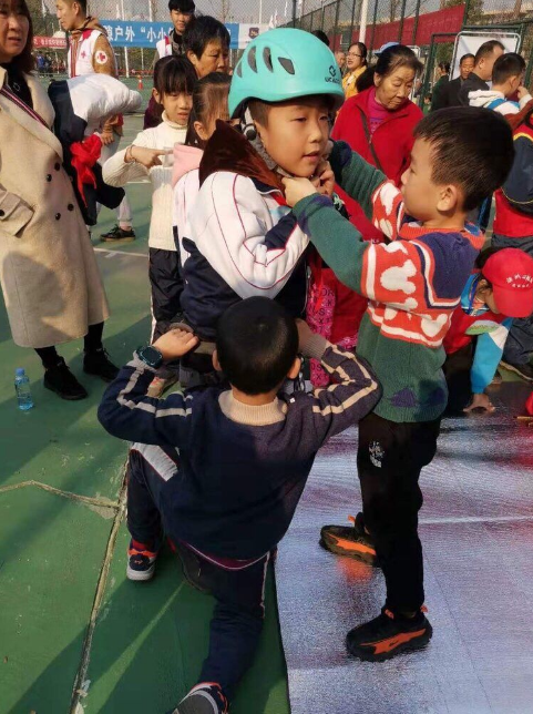 3.清水塘学校125班的5人组代表团,认真听教练讲解安全装备穿戴