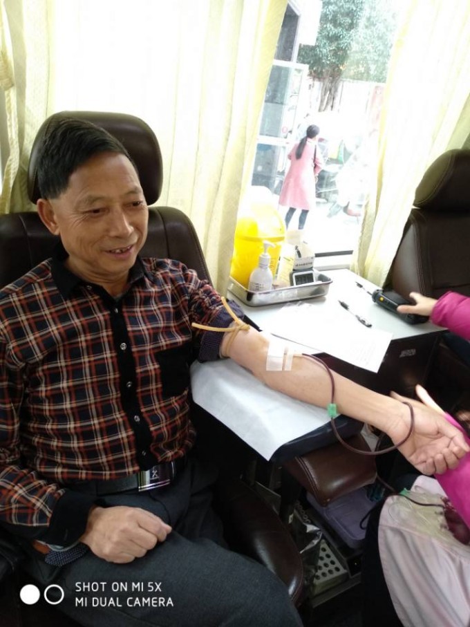 本网讯 "今天已是我第5次献血,累计献血近2000毫升,作为一名党员,要带好头,用真行动传递正能量。60岁我还要来献血。"炎陵县教育局机关党员57岁的何喜才同志在无偿献血活动现场洋溢着喜悦。