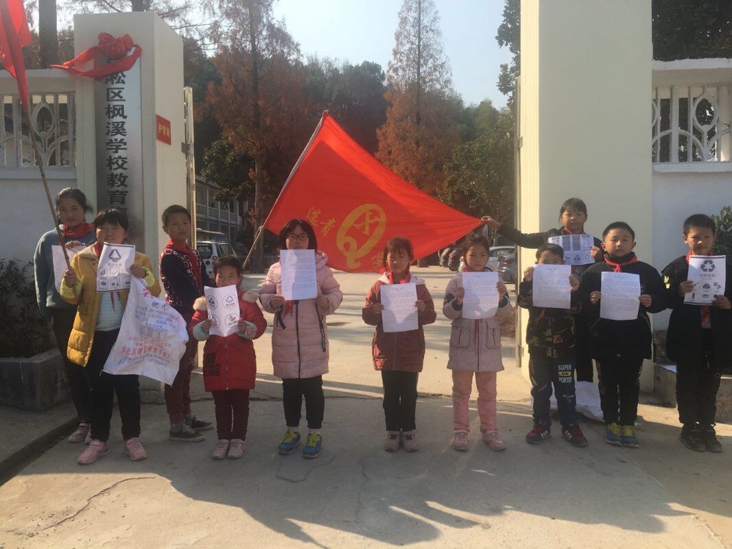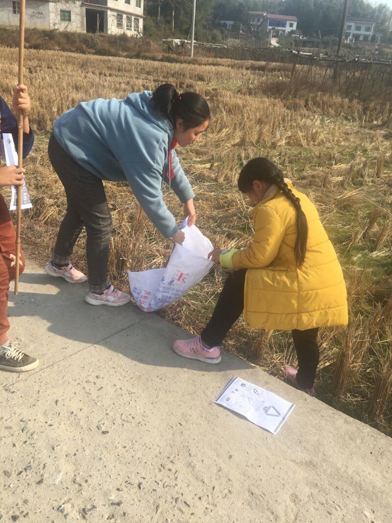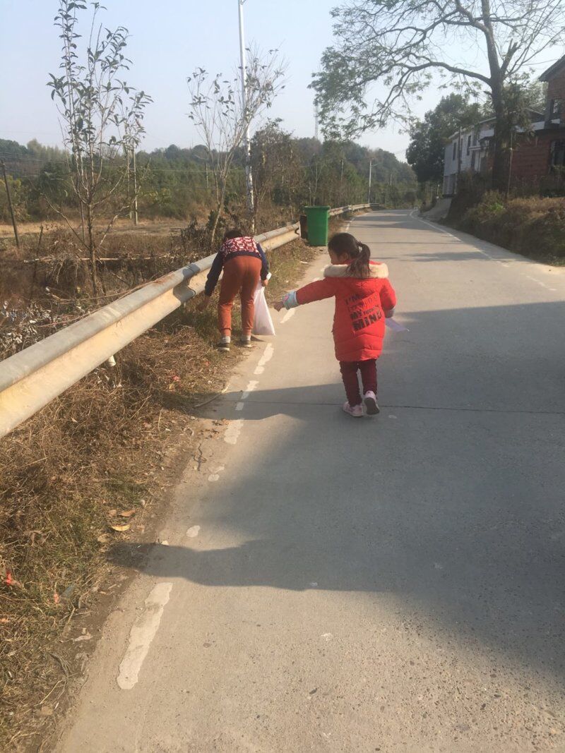 我们满怀期待出发,这不我们的少先队员们一马当先,发现了路边的垃圾,谨记我们"垃圾不落地"的宗旨,率先捡起了垃圾。