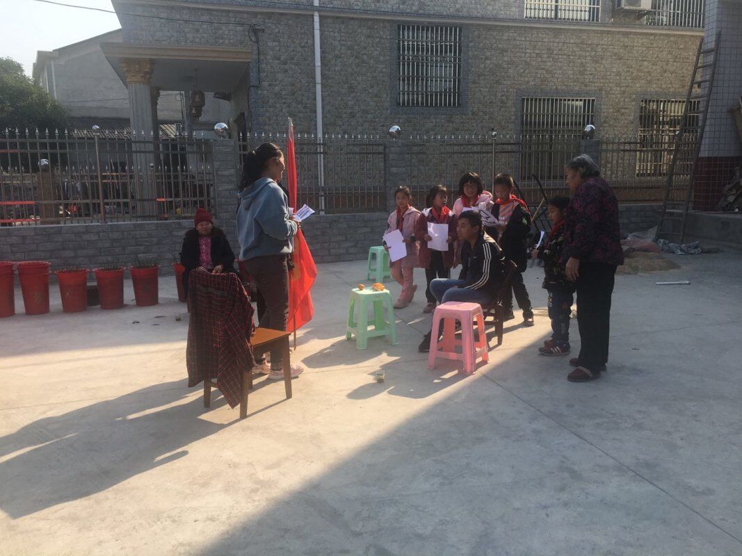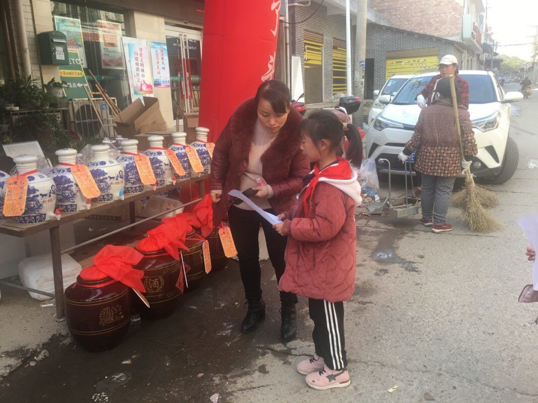 2019年12月10日,芦淞区选青小学少先队大队干部和刘琬卿老师一行人来到姚家坝镇上进行"垃圾不落地"街头劝导活动。下午13:30分,同学们怀着满分的期待,拿着手里精心准备的"垃圾不落地"倡议书和"垃圾分类"小知识传单,摩拳擦掌,准备开始他们下午进行的街头劝导活动。看,我们先美美的在校园门口合个影。
