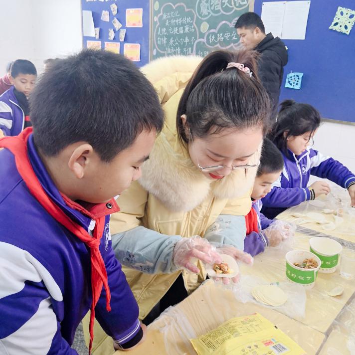 接下来,活动正式开始了!一至六年级学生按年级分成三支不同的队伍,分别领到了"多样的饺子""多彩的饺子""多味的饺子"任务。